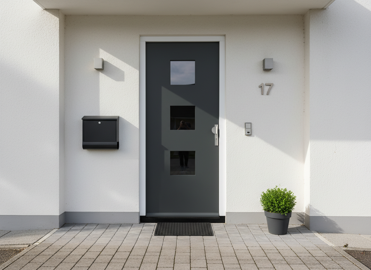 Diese Haustür aus Holz kombiniert modernes Design mit einer strukturierten Oberfläche. Die senkrechte Fräsung verleiht der Tür eine klare Gliederung, während der Stoßgriff aus Edelstahl einen modernen Akzent setzt. Maße, Holzart, Farbe, Griffsystem und Ausstattung können individuell bestimmt werden – ob Kiefer, Meranti oder Eiche, naturbelassen, lasiert oder in RAL-Farbe lackiert, inklusive anpassbarer Profilstärke und Sicherheitspakete.