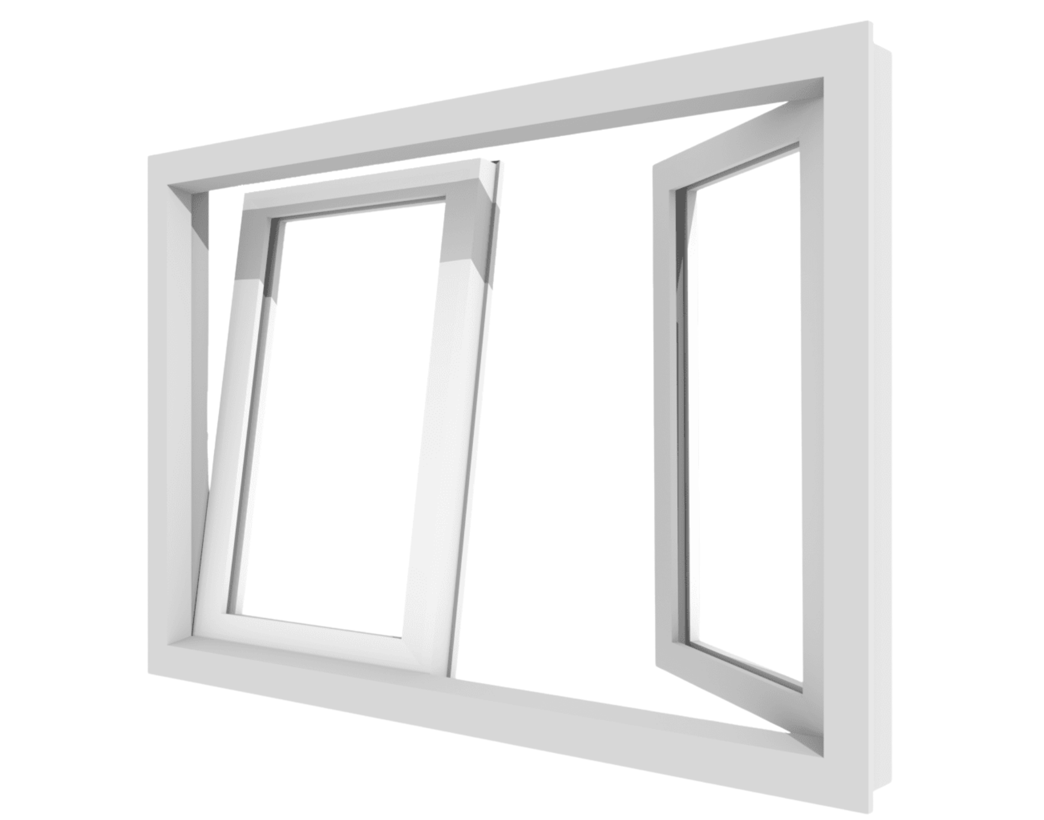 Kunststoff-Dreh-Kipp-Stulpfenster mit 2 Flügeln, nach innen öffnend