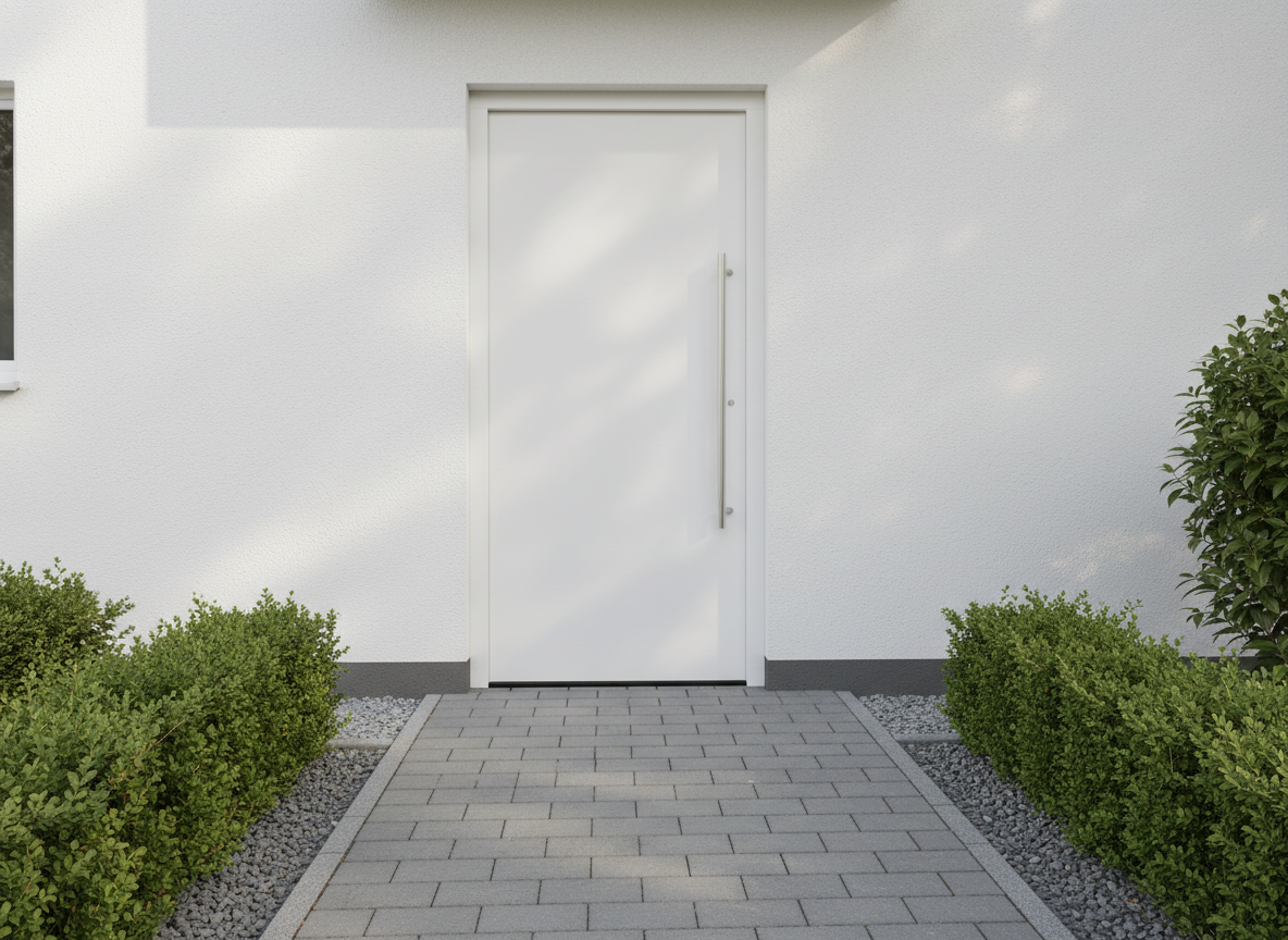 Die Kunststoff Haustür Hannover überzeugt durch ihre schlichte Eleganz und eine vollflächig geschlossene Optik. Ohne Glasfelder fügt sie sich harmonisch in jede Fassadengestaltung ein und sorgt gleichzeitig für maximale Privatsphäre. Die Tür kann farblich individuell angepasst werden – von klassisch bis modern.