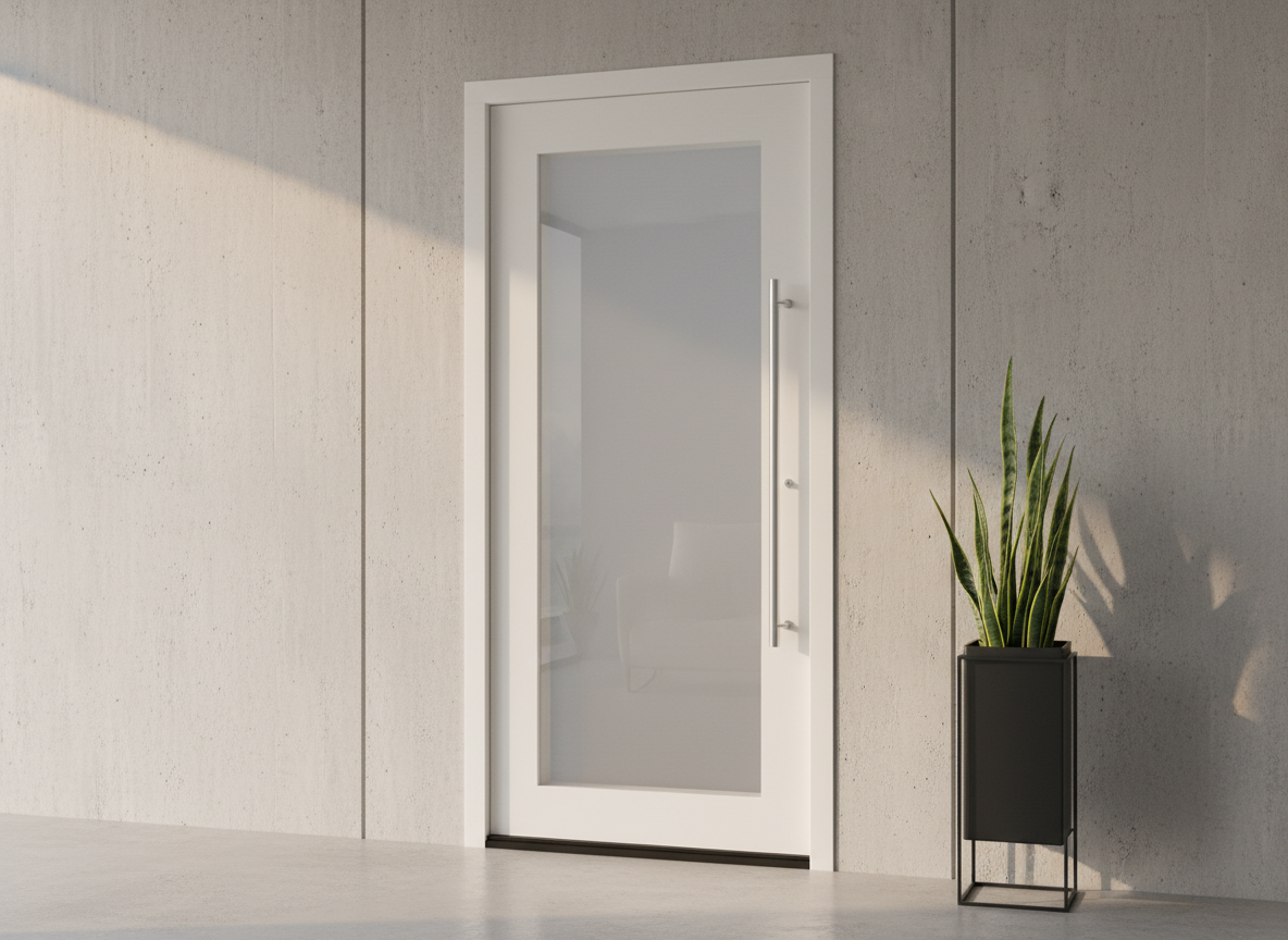 Die Kunststoff Haustür Münster besteht fast vollständig aus Glas und sorgt für eine helle, offene Atmosphäre im Eingangsbereich. Das großzügige Glaselement verleiht der Tür ein modernes, elegantes Erscheinungsbild – ideal für lichtdurchflutete Wohnkonzepte. Die Farbgestaltung kann individuell gewählt werden, passend zu Fassade und Stil des Hauses.