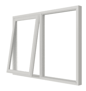 Kunststoff-Klappfenster (links) mit Festverglasung