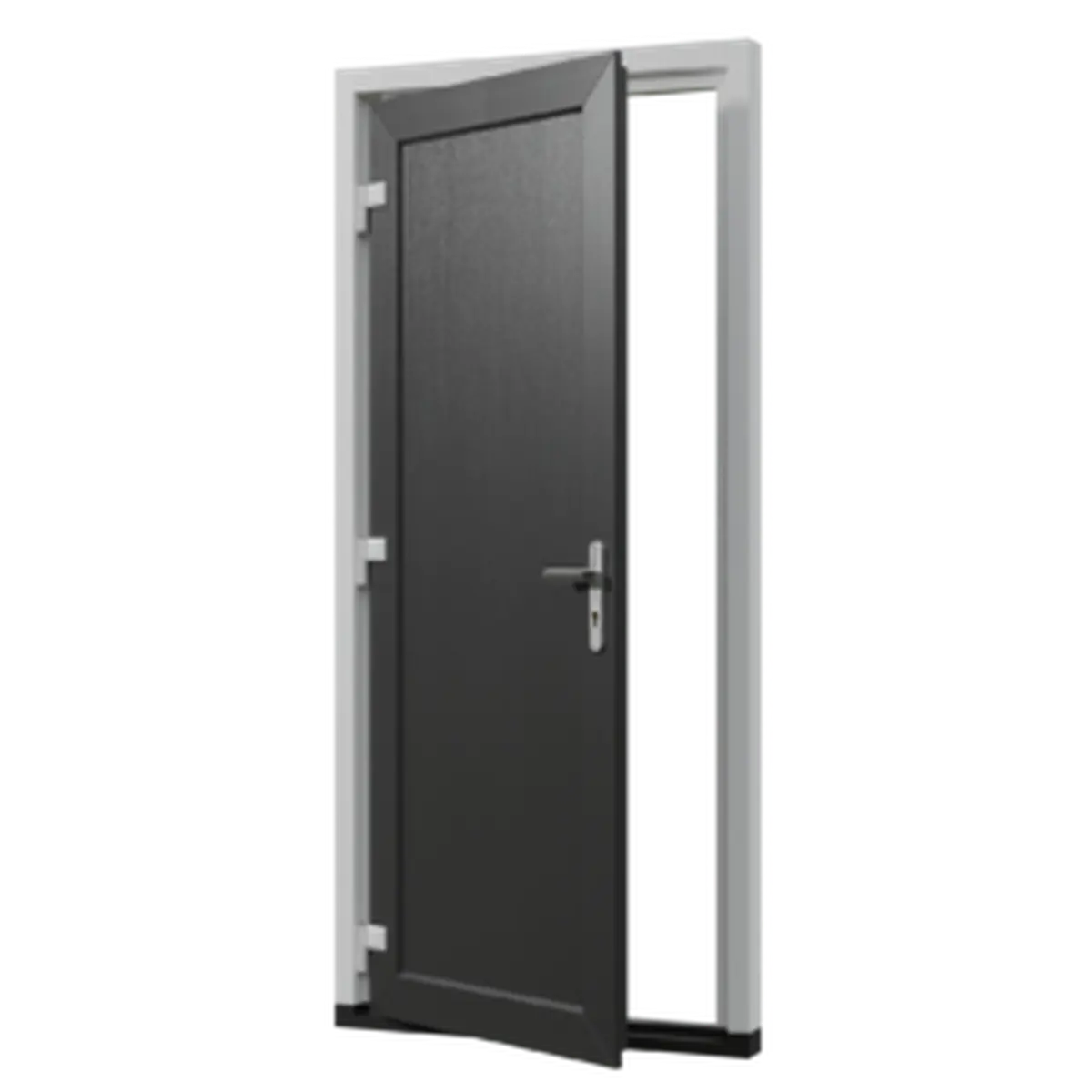 Diese Nebeneingangstür aus Kunststoff ist auf der linken Seite mit einem festverglasten Seitenteil ausgestattet. Das Türblatt selbst ist vollflächig geschlossen und bietet zuverlässigen Schutz und Stabilität. Die seitliche Glasfläche bringt zusätzliches Tageslicht in den Raum – praktisch für Nebenräume, Kellereingänge oder Garagen.