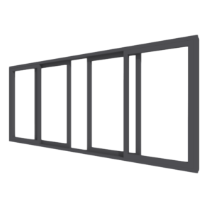 Besteht aus vier Elementen, wobei die beiden mittleren beweglich sind und die äußeren fest verbaut sind. Die Breite des Durchgangs wird so maximiert und erlaubt eine nahtlosere Verbindung zwischen drinnen und draußen.